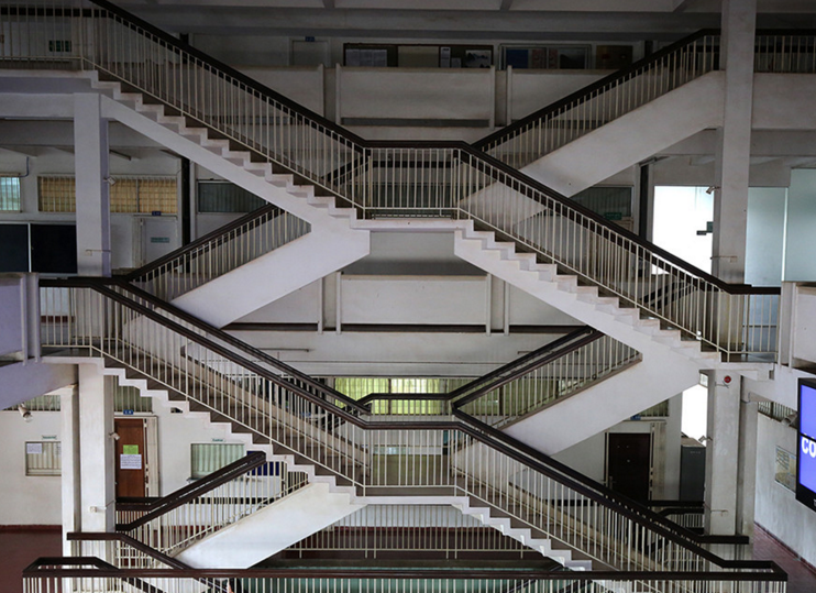 外語(yǔ)樓別具特色的設(shè)計(jì),能夠有效分流人群,防止擁堵和踩踏事件
