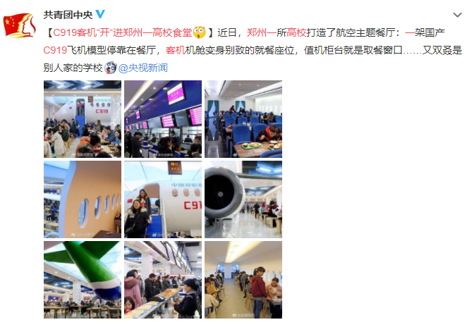 前段時(shí)間,微博@共青團(tuán)中央分享的一則“C919客機(jī)‘開’進(jìn)鄭州一高校食堂”的消息引起網(wǎng)友熱議,評(píng)論精彩紛呈。