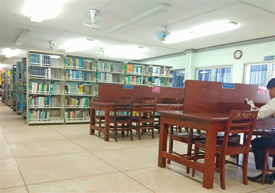 之前我們說老撾國(guó)立大學(xué)“低調(diào)奢華有內(nèi)涵”,教室和食堂桌椅是實(shí)木的,進(jìn)入圖書館之后,發(fā)現(xiàn)閱讀處的桌子也是實(shí)木的...不愧是木材資源豐富的國(guó)家。