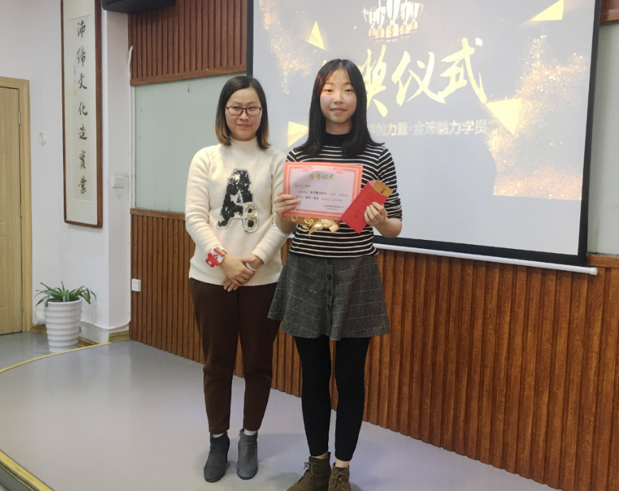 金沛南湖校區(qū)張金雪校長為何佳學(xué)員頒發(fā)三等獎