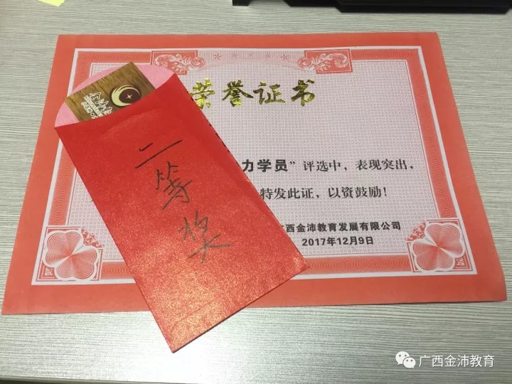 李珩立學(xué)員獲得二等獎獎金及證書