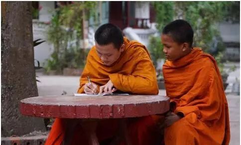 由于佛教文化的深入,在老撾的學校里,可以看到這么一群人,他們身著橙色袈裟,身著制服的學子們一同行走在學校的道路上,形成獨一無二的學習氛圍。