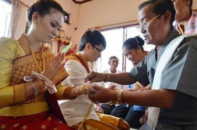 與中國不同,老撾流行倒插門即男方主動到女方家里做上門女婿。婚禮也是由女方家操辦,這與老撾女性的社會地位日益提高息息相關(guān)。