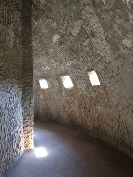塔分三層,從低到高分別代表地獄、人間和天堂地獄的雕像多以惡鬼骷髏為主,沿著“天堂地獄塔”張開(kāi)的嘴巴進(jìn)入,拾階而上,沿著一層環(huán)繞的塔邊,塔心設(shè)計(jì)為用水泥澆筑的各種地獄景象,光線(xiàn)從塔壁蜿蜒進(jìn)去,微弱的光打在面目可怖的鬼怪雕塑上,讓人心生敬畏。