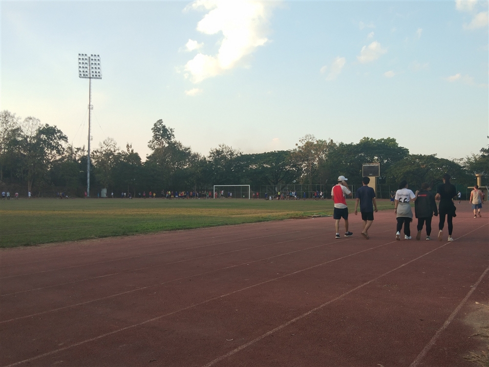 每天下午,都會有學生到球場跑步、踢球,每一個學生都在老撾國立大學的塑膠跑道上留下了痕跡,春夏秋冬、風吹雨淋,它永遠在這里。